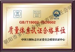 公司于2001年通過IS9001-2000質量管理體系認證,生產的多元牌高錳鋼鑄件于2005年榮獲"遼寧省名牌產品"稱號。